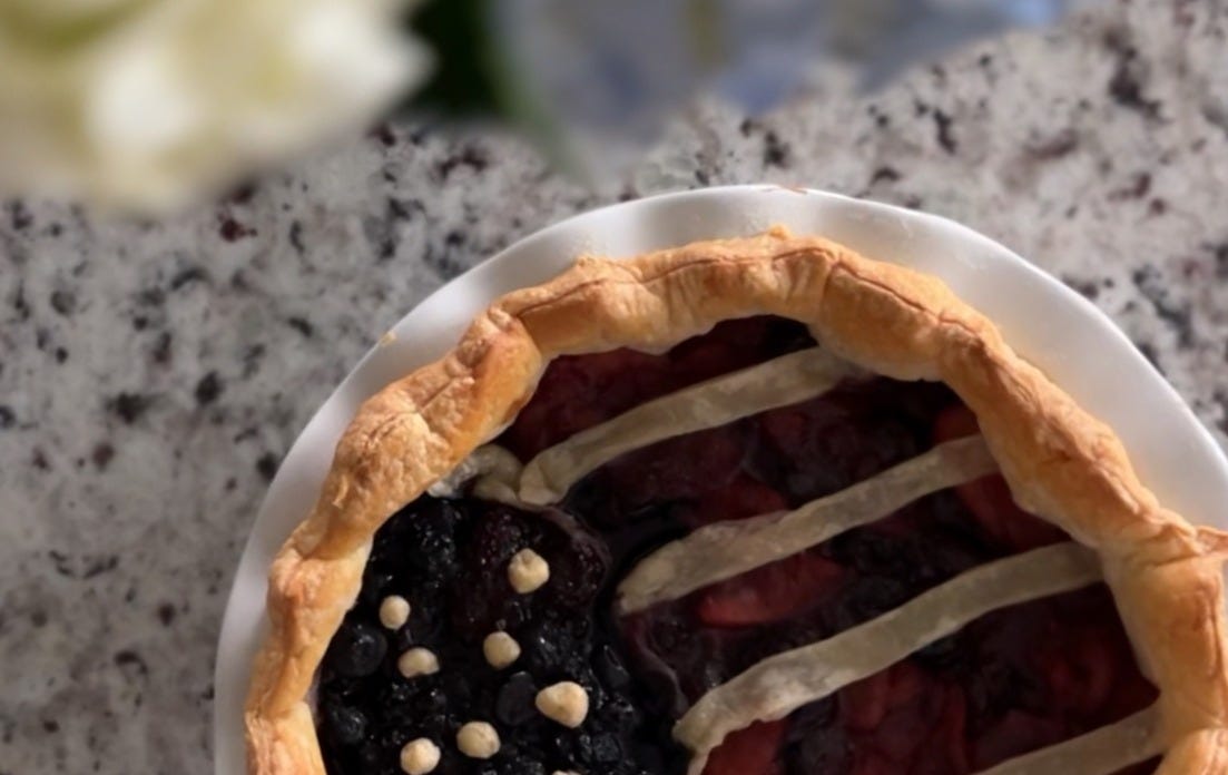 My first idea was to make the red stripes cherry and the blue corner blueberries & blackberries. My only dilemma was that my husband is not a huge fan of cherries or blueberries & blackberries…so I decided to be creative and try something different.