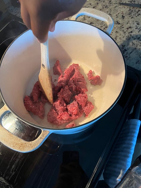 Cook the beef & veggies