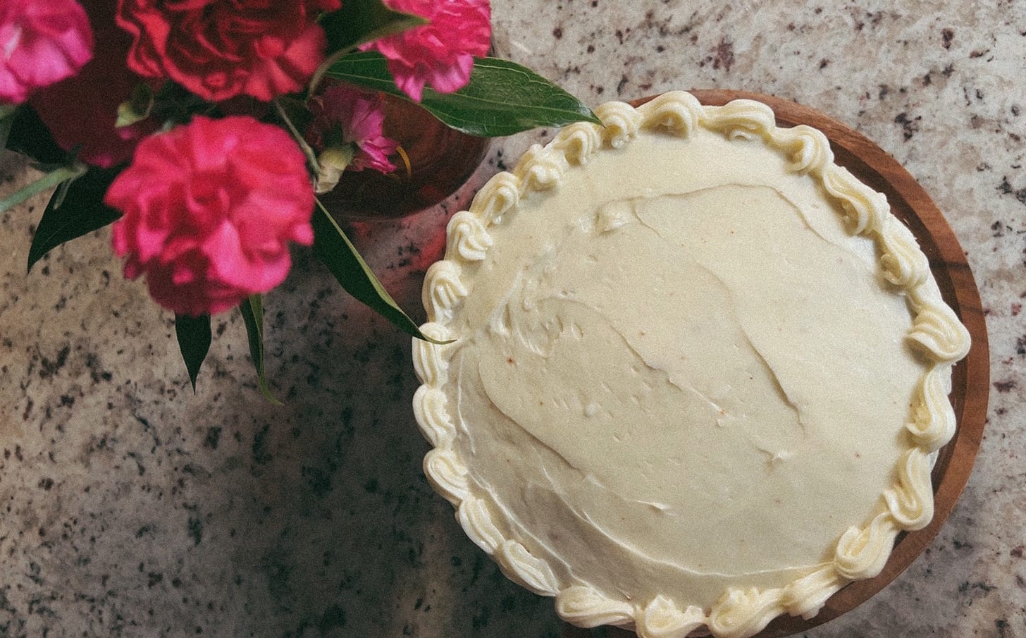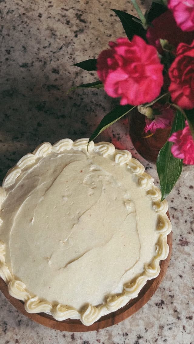 Instead of a traditional pan, I baked the bars in two round cake pans and did my best to frost them with a piping bag.