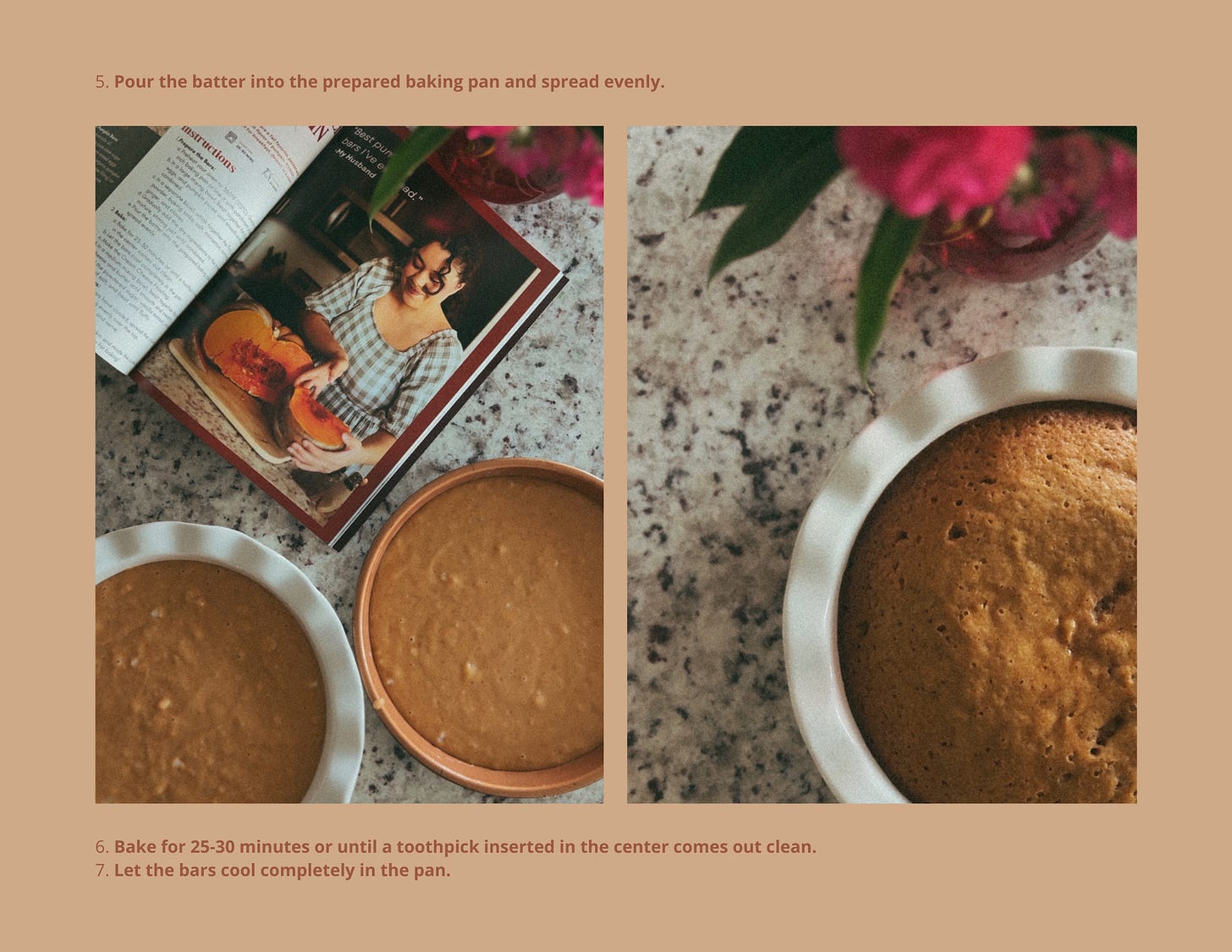 My husband was craving the pumpkin bar recipe from our magazine, and I just so happened to have some homemade pumpkin purée in the freezer from the fall—perfect timing! So, I decided to surprise him with a little twist on the classic.